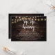 Modern Calligraphy Bridal shower invitation card (Sip, sip, hooray), in rustic dark wood string lights design themed. Invite the guests with this perfect Invitation Card. Add your bridal shower details in matching wording.