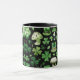 Celebrate St. Patrick's Day in style with this unique black ceramic mug, decorated with a lively pattern of classic green hats, shamrock leaves, and green-dotted mushrooms. The vibrant design wraps around the mug, capturing the festive spirit of St. Patrick's Day and adding a playful Irish touch to your morning coffee or tea. This sturdy, double-sided black ceramic mug is perfect for adding a bit of luck and cheer to your day, whether at home or the office.