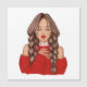 Sipping Hot Chocolate in Winter in Red Sweater with Red Lips