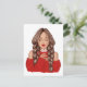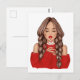 Sipping Hot Chocolate in Winter in Red Sweater Car Postcard