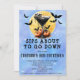 Sips About To Go Down Martini Halloween Party Invitation - Featuring a black drink in a martini glass adorned with skulls and orange pumpkins. Black bats fly around and a full yellow eerie moon is in the background. A blue and purple starry, mystical and celestial sky is the backdrop for this goth, witchy vibes Halloween Costumes and Cocktails invite. All text is editable. Available as an instant digital download, perfect for sending via text, email or social media.