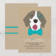 A handsome pup, wearing a monocle and bow tie, is featured against a tan damask background in this fun invitation. Well-suited for any dog-lover's birthday celebration. (FP)