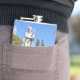 The flask itself is fine. It’s a cheap flask, obviously bought in bulk, however am prepared to overlook that. Given that it is a personalized item, I would have liked to have seen gift boxing instead of the generic packaging. Terrible printing, and/or quality. It’s a cheap, tacky vinyl. It is not cut straight and is also applied in a way that it is overhanging the bottom, causing the glue to catch on items and it will eventually roll and tear, damaging the wrap.
