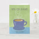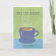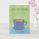This Birthday card for Sister features a hot, steaming cup of coffee with swirls of steam and foam. Cup and saucer are purple on a light blue and kiwi green background with a watercolor effect. Thin, modern typeface for the front sentiment. Perfect way to say you love her "a latte".