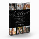 Send a beautiful personalised gift to your sister that she'll cherish forever. The plaque is designed like a dictionary definition with "sister" designed in a beautiful handwritten script style with black background. Special personalised photo collage photo block to display your own special family photos and memories. Our design features a simple 8 photo collage design. Personalise with your own sister's definition/message along with additional text/message. Makes a great gift for birthdays, anniversaries, retirement and so much more! Design by Moodthology Papery.