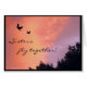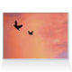 This beautiful sister friendship card captures two doves flying up into the sunset. The sky seems to be on fire with clouds in rainbow colours of red, orange, yellow, blue, magenta and purple. Just the very tops of the trees are showing in black silhouette. The inside repeats the lovely sunset colours with two more doves. The text reads: Sisters fly together. It can be easily customised or removed.