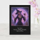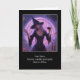 Halloween with a witch and wine! This Happy Halloween card has a beautiful witch that looks a little bored with potions, spells and candles and is dipping into the wine.