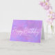Modern and simple but very girly and feminine purple and white card. Happy Birthday is written in a bright white calligraphy script. It really pops against a bright purple abstract background.