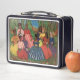 This is a standard metal lunchbox that appears to work just fine. We designed this box ourselves with an uploaded photo and custom text on the front and back. It looks absolutely beautiful except the front of the lunchbox is not centered like it shows in the photo. The print borders don't align with the inset flat part of the box where the preview photo online showed it perfectly centered in there. The back looks nice and centered though.