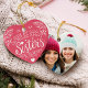 Sisters Connected At Heart Photo Keepsake Pink Ceramic Ornament