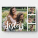 This modern sisters, photo collage plaque is the perfect gift for your sister, featuring 4 of your favourite photographs, the text sisters in a fun script font, and then personalise with your names. Fantastic as a christmas, graduation, galatines, birthday or gift for any other special occassion, the font style, size and colour can be changed by clicking on the customise further link after personalising.