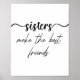 Celebrate the bond between sisters with this heartwarming "Sisters Make The Best Friends" poster. Featuring a beautifully designed typography and a heartwarming message, this poster is a perfect addition to any room in your home. The message "Sisters Make The Best Friends" is a sweet reminder of the unique bond that only sisters share. It captures the essence of the special relationship that sisters have and celebrates the joy of having a sister as your best friend. This "Sisters Make The Best Friends" poster makes a thoughtful and meaningful gift for your sister, or for anyone who values the bond of sisterhood. It is a perfect way to show your appreciation for your sister and to celebrate the special connection that you share. It is also a great way to add a touch of sentimentality to your own home decor.