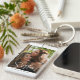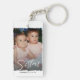 Modern photo key chain featuring 2 photos inside white frame and typography script ''sisters'' in trendy handwritten lettering. Personalize further with a name.