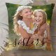 Sisters photo pillow, personalised with your names. The photo template is set up for you to add your own pictures - one of the front and one on the back. The front has an elegant script overlay which simply reads "sisters" whilst the back has your names in bold typography. This design is available with a white overlay or a black overlay so you can pick the colour that best suits your photo.