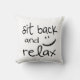 A simple and sweet throw pillow that simply reads, "Sit Back & Relax".