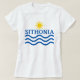 Blue Text Sithonia, Waves, Orange/Yellow Sun.