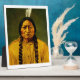 This table top plaque with easel features legendary Hunkpapa Lakota Sioux Native American Indian chief, shaman, holy man and warrior, Sitting Bull, 1831-1890. This is a colourized version of the original photo created by David Francis Barry circa 1885. The original black and white photo is preserved in the permanent collection of the Library of Congress.