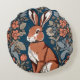 Sitting Hare William Morris Inspired Floral Round Cushion