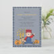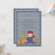 An adorable scarecrow sitting next to a bale of hay and two jack-o-lanterns is wearing a smile and waving hello. It is framed with a plaid pattern which is fully repeated on the back. This versatile invitation is well-suited for children's birthday celebrations, barn parties, fall baby showers, Thanksgiving and more.
