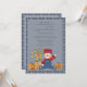 An adorable scarecrow sitting next to a bale of hay and two jack-o-lanterns is wearing a smile and waving hello. It is framed with a plaid pattern which is fully repeated on the back. This versatile invitation is well-suited for children's birthday celebrations, barn parties, fall baby showers and more.