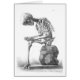 Stylish, intricate vintage illustration of a sitting skeleton from the 19th century, with the full skeleton displayed sitting on a rock, observing it's foot and a faint outline of skin drawn around it. Cleaned up to decorate any item in a stylish and modern way. Add your own text to this skeleton figure drawing if you please or just enjoy the detailed black and white Victorian art.