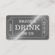 Siver Ticket Style "Enjoy A Drink On Us" Enclosure Card