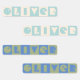 Rectangular iron-on patch for clothing or accessories with customisable 6-letter boy's name.