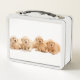 This is a standard metal lunchbox that appears to work just fine. We designed this box ourselves with an uploaded photo and custom text on the front and back. It looks absolutely beautiful except the front of the lunchbox is not centered like it shows in the photo. The print borders don't align with the inset flat part of the box where the preview photo online showed it perfectly centered in there. The back looks nice and centered though.