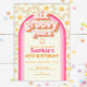 Invite guests to celebrate Six Groovy Years with this retro daisy rainbow birthday invitation! Featuring a cheerful combination of pastel rainbows, vintage daisy florals, and a soft blush pink palette, this boho-style design is perfect for your flower child’s 6th birthday. Customisable with your party details, it sets the perfect tone for a vibrant, fun-filled celebration full of flower power and sweet groovy vibes.