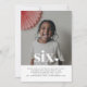 A simple Sixth Birthday invitation featuring your own photo and the words 'six' over the top, along with a little heart shape. You can change the colour of the text and heart in this design, to suit your photo.
