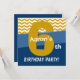 6th Birthday Gold Pattern For Boy V06 BLUE Background This chevron pattern with a custom name ribbon is a fun yet elegant way to invite folks for a 6 year old's sixth birthday party celebration. All text is totally customisable. You can experiment with different paper types by clicking on the "Invitation Options" tab on the upper right hand corner. I recommend the ice hued metallic paper which gives your birthday invitation a festive shimmer and shine. Lovely!