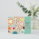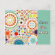 Colourful sixties circles funkily and greatly accentuate this Save-the-Date postcard.