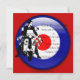 retro look sixties style mod scooter rider on 3d red white and blue target, great gift for any lover of vintage scooters or sixties mod culture