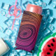 Can cooler with a cool pattern with a sixties vibes. Rainbow coloured circles and swirls.