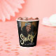 Sixty gold coloured style effect script text on black paper cups. Personalise these cups with two photos of your birthday girl turning 60, one on each side (for past and present plus add your own name or message. Ideal for a 60th birthday party or surprise sixtieth birthday event. Other years and matching items are available. © Original design by Sarah Trett for www.mylittleeden.com on Zazzle.