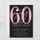 Introducing a chic and stylish "60 and Fabulous" birthday party invitation, perfect for celebrating this milestone with flair. The sleek design features a bold black background with "60 and Fabulous" prominently displayed at the top in elegant bold serif and script calligraphy. The text throughout the invitation combines modern and script fonts in white and pink, creating a fun yet sophisticated contrast against the black backdrop. Ideal for a fabulous 60th birthday celebration, with customizable background colors, fonts, and frame to match your style. Modern 60th Birthday Party Invitation Black Pink White Bold Script Fun Fabulous Typography.