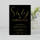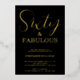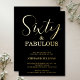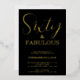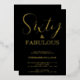 Sixty and Fabulous script, minimal black and gold foil 60th birthday invitation that you can personalise and send out for your sixtieth birthday party celebration. The words "Sixty and Fabulous" are set in a popular script font.