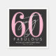 Celebrate in style with this modern cocktail napkin design, perfect for a “Sixty and Fabulous” birthday celebration or any milestone event. The napkin features a large pink “60” across most of the space, with the word “sixty” written in elegant white script layered over it. Just below, “fabulous” appears in bold white sans serif font for a sleek, modern look.