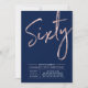 Celebrate your special day with this simple stylish 60th birthday party invitation. This design features a rose gold brush script "Sixty" with a clean layout on a navy blue background. You can customise the text and background colour. More designs and party supplies are available at my shop BaraBomDesign.