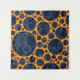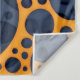 A vibrant pattern showcases a series of interconnected dark blue circles set against a bright orange background, creating a striking contrast. The overlapping arrangement gives a sense of depth and movement. Illustration design of trippy abstract orange and blue lava slime holes. Tags: abstract, dots, geometric, crazy, orange, blue, hallucinogenic, holes, psychedelic, lava, trippy, trypophobia