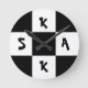 The well known black and white chequered background, symbolic to Ska music, incorporated with the word Ska. This was a steppingstone movement in music combining carribean and jazz elements and precursing reggae.
