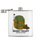 The flask itself is fine. It’s a cheap flask, obviously bought in bulk, however am prepared to overlook that. Given that it is a personalized item, I would have liked to have seen gift boxing instead of the generic packaging. Terrible printing, and/or quality. It’s a cheap, tacky vinyl. It is not cut straight and is also applied in a way that it is overhanging the bottom, causing the glue to catch on items and it will eventually roll and tear, damaging the wrap.