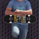 This Skate With Passion Skill On Wheels skateboards are 7-layer boards that are sturdy enough to be taken down any half-pipe or kicked into action by popping an ollie. Choose any background colour your choose.