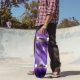 This quality made skateboard is shown with a abstract art pattern print in colours of purple multi.