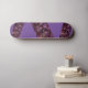 Skateboard shown in a multi purple colour abstract stars graphic print.