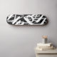 Classic black, white, and grey skateboard deck with a natural wood top finish.
