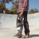 This skateboard deck features a striking design inspired by a heavily tattooed samurai. The graphic showcases a close-up of a person's hands gripping a katana, their arms adorned with intricate, dark tribal tattoos that contrast sharply against the orange undertones of their clothing. The overall aesthetic is edgy and bold, perfect for those who appreciate unique and powerful imagery. The deck's shape and construction details are not specified in the image.