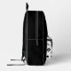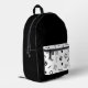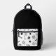 Fun white and black skateboarder design backpack for boys, girls, men, women.