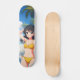 Skateboard de dessins animés japonais d'une jeune femme timide à la plage en maillot de bain.