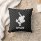 Cool, colourful kid's skateboarding, skater, skateboarder, white extreme, xtreme sports silhouette design on black and dark grey, grey diagonal stripes pattern. Perfect gift for baby, toddler, kids, children, teens, or adults! Personalised the design by adding a child's name or custom text with athletic, sporty look sports white font. Visit our store, Birthday Party House, for more great customisable boy and girl products!